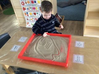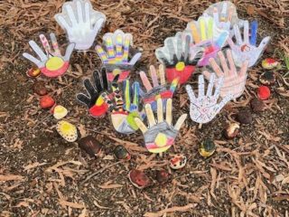 In our outdoor learning environment, learners collected various natural treasures and discussed their importance to them. Using sand and tree sticks, we could observe mark-making of our handprints, including the intricate Aboriginal symbols we have been learning as a reference in our designs. Learners have also enjoyed creating and constructing an indoor landscape for God’s ‘minibeast’ creatures to be cared for.